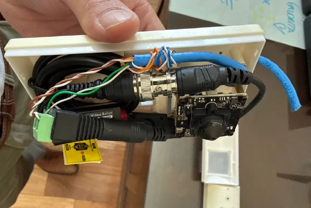- Dispositivos hallados: Se detectaron tres aparatos electrónicos ocultos con capacidad de registro de audio y video en tiempo real.